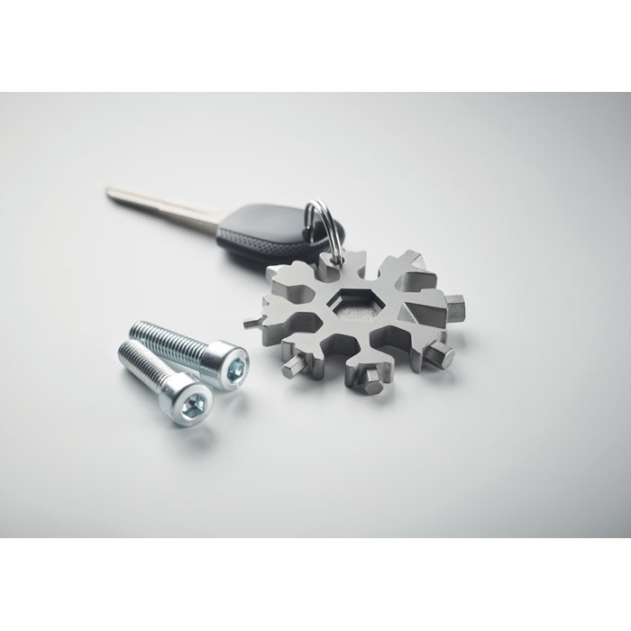 Multifunctionele 17-in-1 roestvrijstalen sneeuwvlokvorm. Inclusief metalen bevestigingsring.