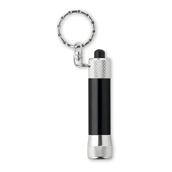 Mini aluminium zaklampje met sleutelhanger. Inclusief 4 LR44 batterijen.